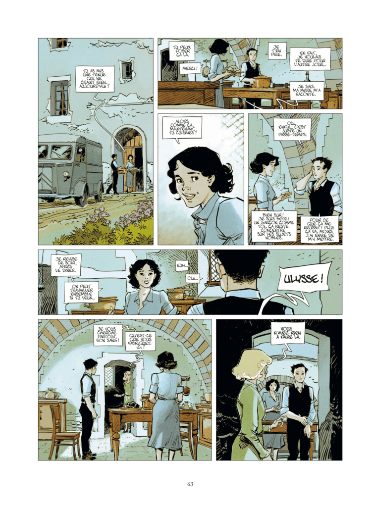 Pourtant il s’agit d’un récit d’émancipation et de rédemption. Ce roman graphique est en effet également dédié au père de Xavier Dorison qui a, comme Ulysse, totalement changé de voie en décidant de devenir coiffeur après de brillantes études dans un lycée du 6e arrondissement. Ce parcours atypique préfigure également celui de l’auteur qui a abandonné le chemin tout tracé d’une carrière dans la finance pour embrasser celle de scénariste BD. On a donc des histoires en miroir : entre les héros et leur auteur mais aussi entre les personnages. Ainsi, on apprend que M. Ducerf a dû lui-même renoncer à sa passion (le tennis) pour endosser le rôle qu’on lui destinait… accepter le choix d’Ulysse serait alors pour lui devoir reconnaître que contrairement à son fils il n’a pas eu le courage de poursuivre ses rêves … ce qui rajoute à la fois un ressort dramatique et de la complexité au personnage. De même, la mère d’Ulysse, comme son fils, a du mal à trouver sa place et est victime des injonctions de son époque. Pourtant elle s’avèrera bien plus forte qu’on ne pourrait le croire.