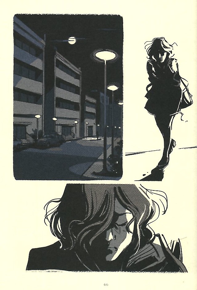 Pour en revenir aux retours, aux flashbacks, il y a cette colorisation vintage tramée très années 70 qui rappelle aussi le pointillisme à la Lichtenstein sur papier jauni .…