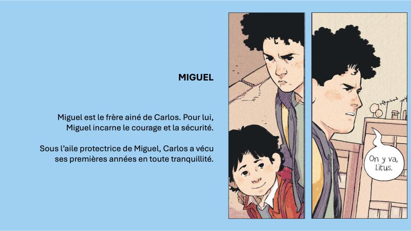Outre les copains, il y a la famille bien sûr : Mémé Ilu et Miguel le grand frère parti trop tôt.