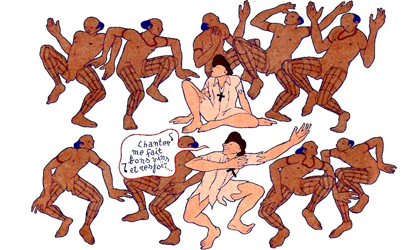 Nudité, jambes tatouées, amour de la musique, fascination pour les livres et les chants européens, dévoration des prisonniers au cours d’une cérémonie rituelle… tels sont les mœurs de ce peuple de chasseurs guerriers. Nicolas restera cependant fidèle au catholicisme et ne s’adonnera pas au cannibalisme.