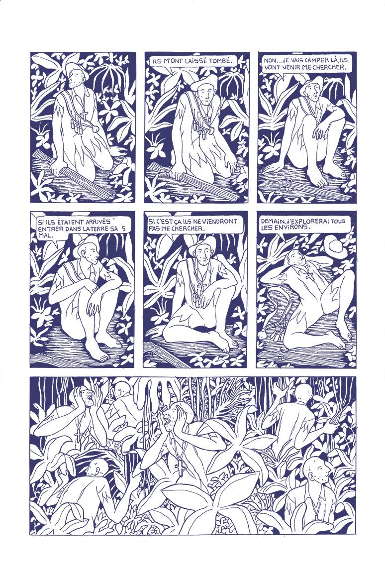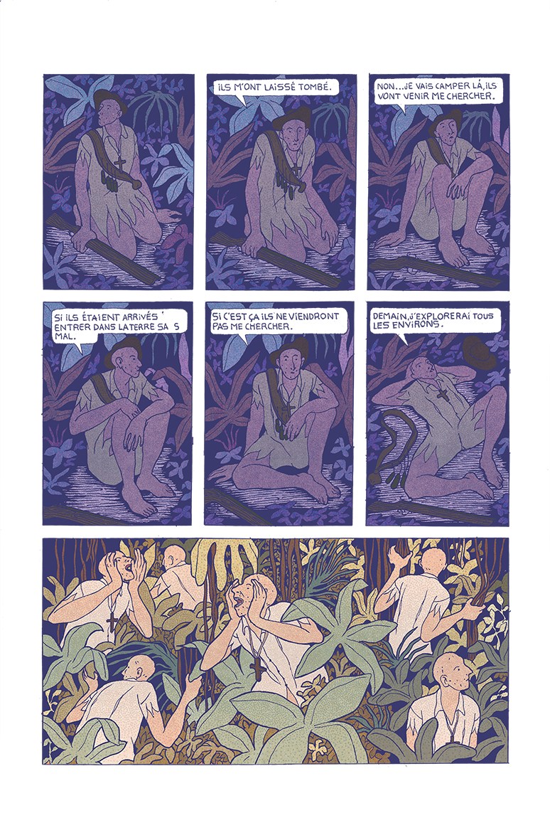 Antipodes est donc leur deuxième collaboration initiée par Éric Lambé qui, marqué par la lecture de Nus, féroces et anthropophages, récit publié en 1557 par Hans Staden, un Allemand captif des Tupinambas durant neuf mois, a proposé à David B. de renouveler l’expérience à travers un récit sur les tribus amazoniennes. David B. lui, connaissait la tentative ratée de colonisation française du Brésil au XVIe par Villegagnon. Ils tenaient leur sujet …