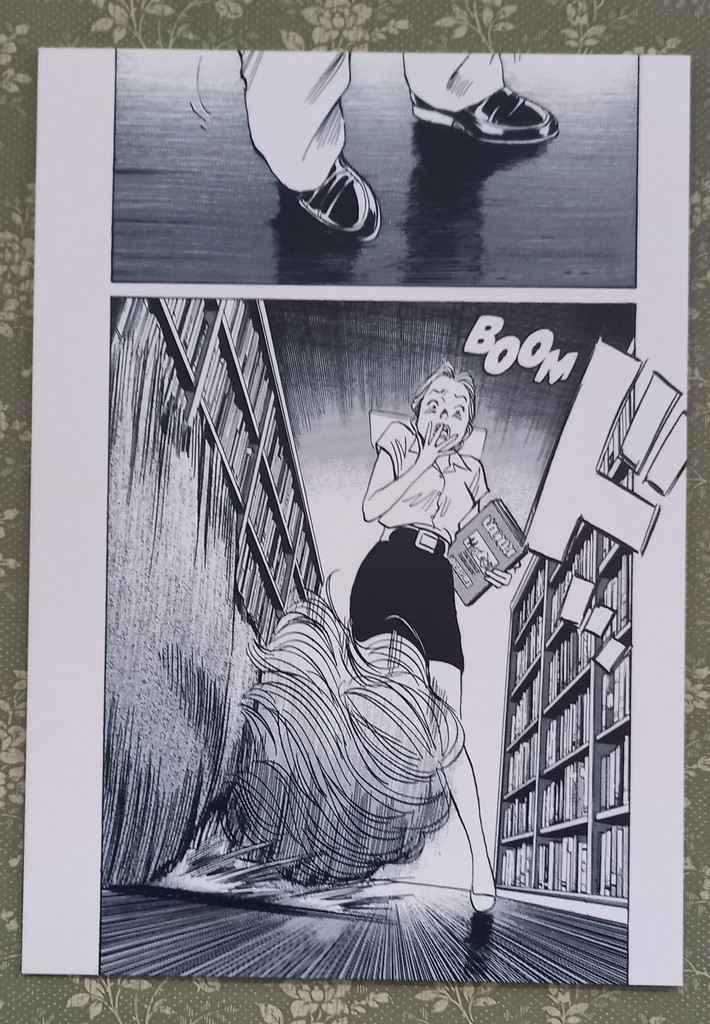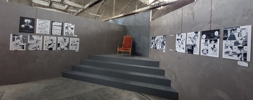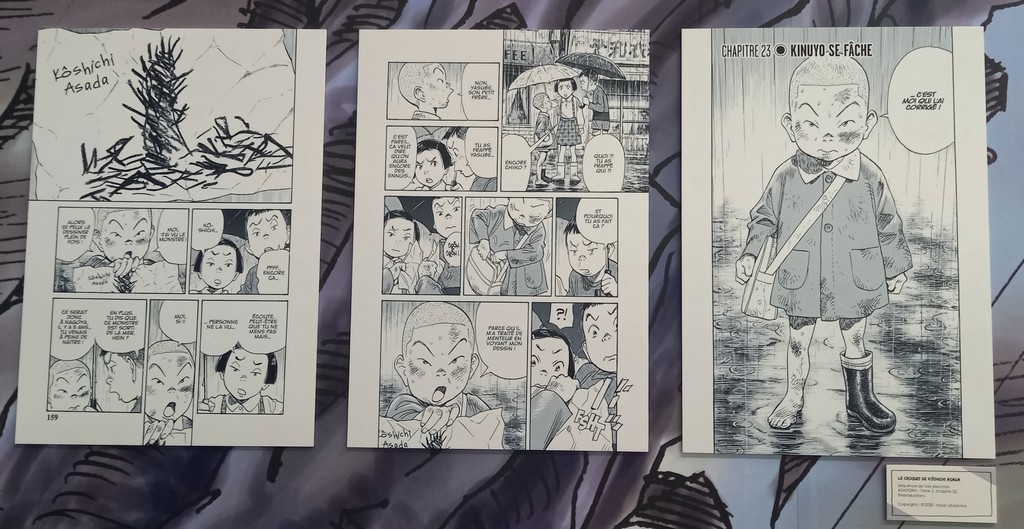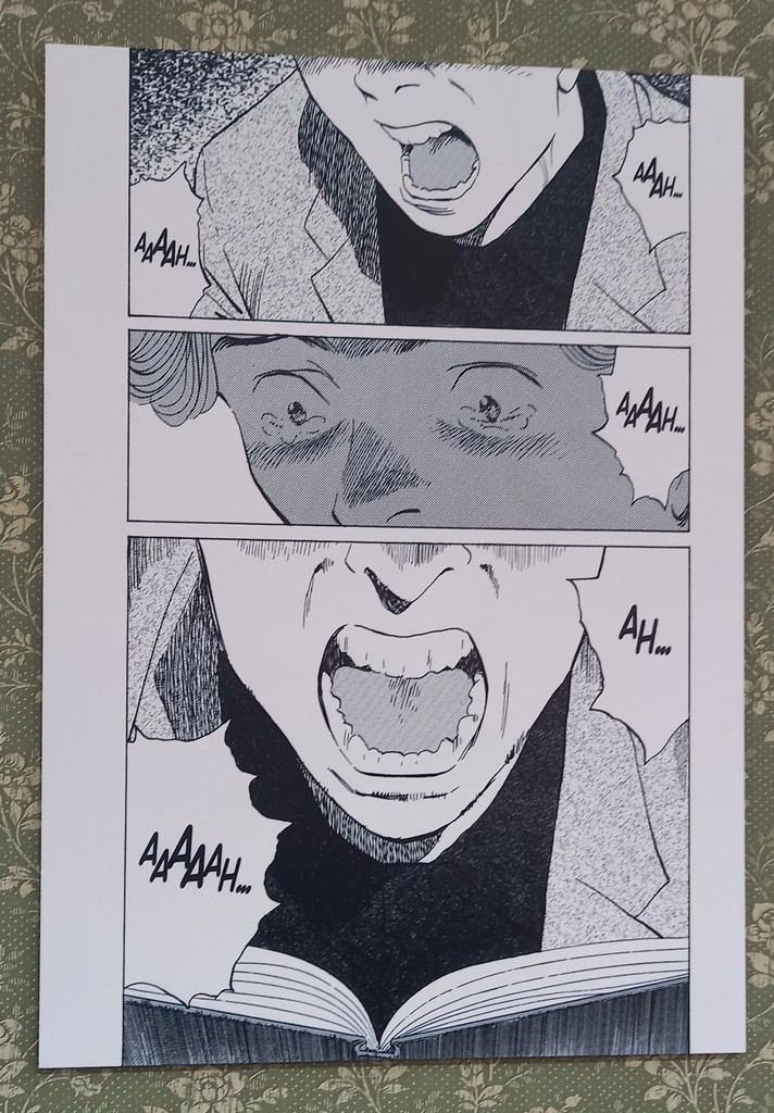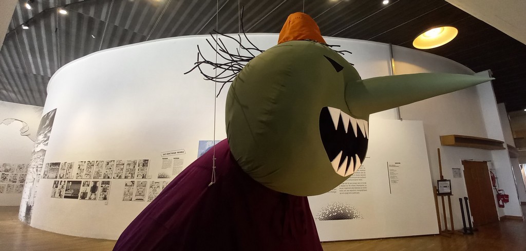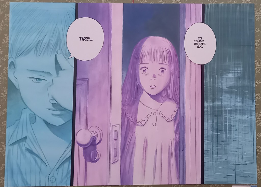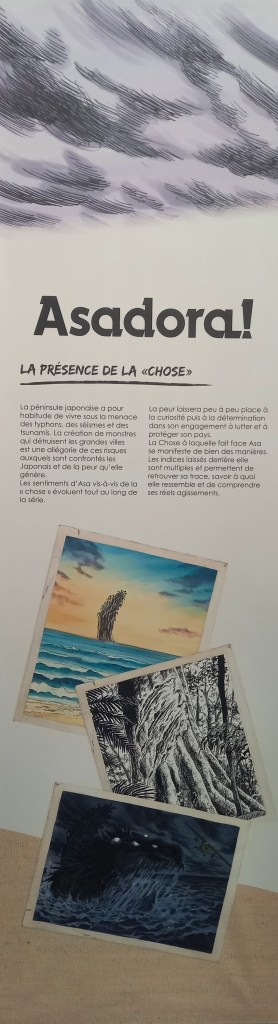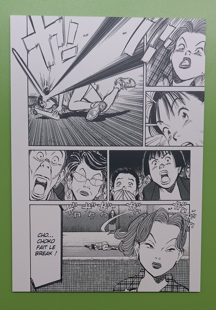 Pour les deux expos, pas de planches originales – Shōgakukan, l’éditeur d’Urasawa interdisant la sortie de ces planches du Japon – mais des reproductions et des agrandisements d’excellente qualité et une scénographie époustouflante.