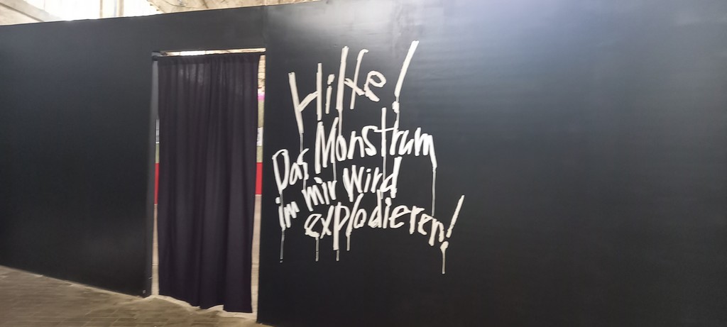 Espace de transition vers Monster, le noir est de plus en plus présent, un rideau venant occulter l’entrée afin de préserver l’effet de surprise.