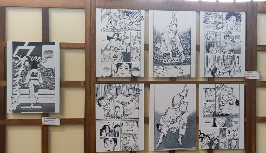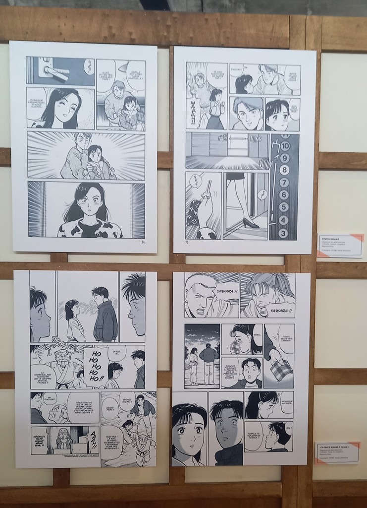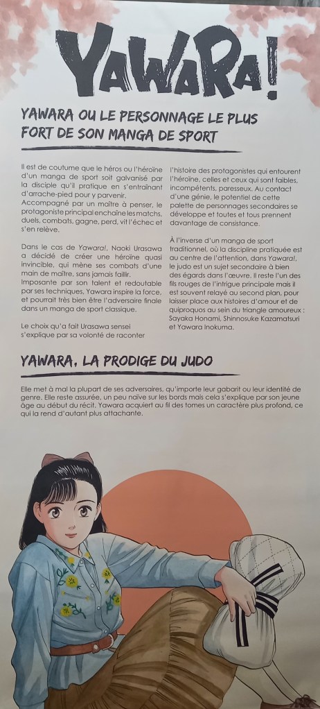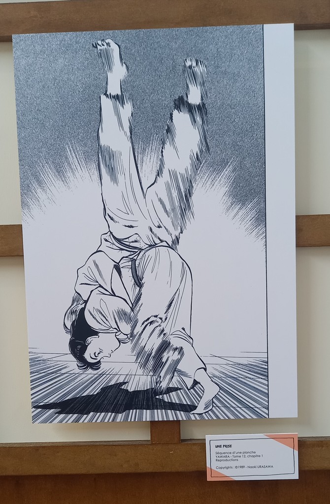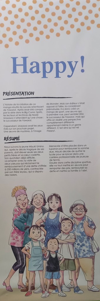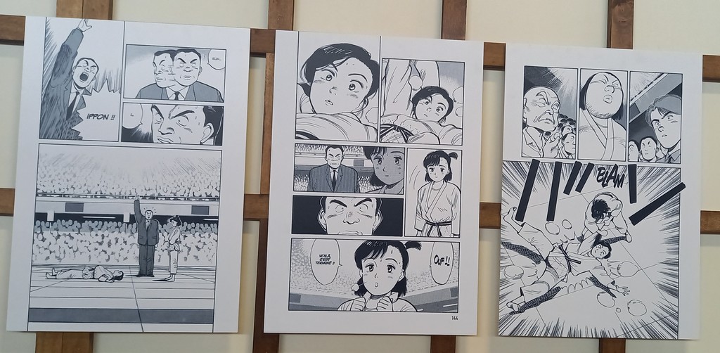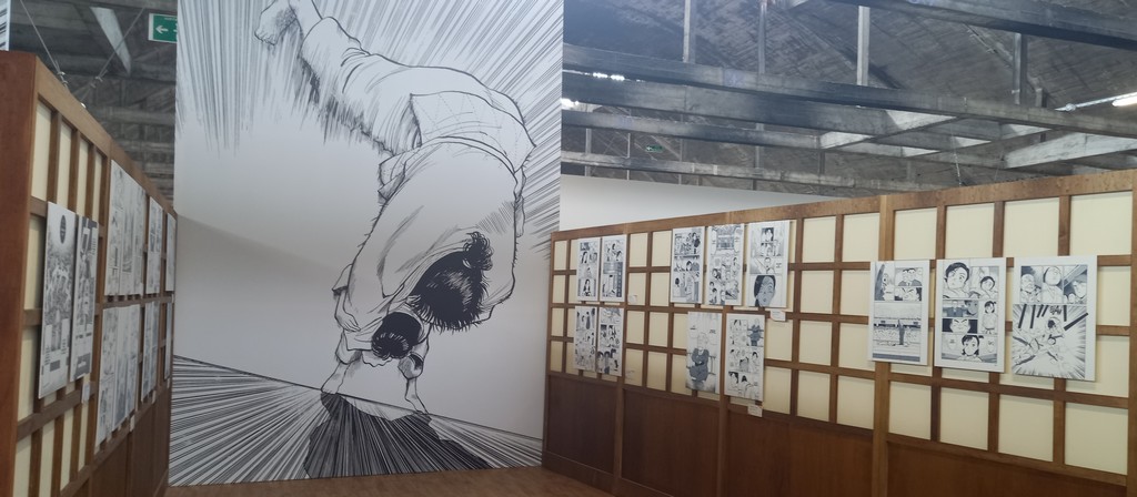 L’exposition Naoki Urasawa, Auteur en séries comme son nom l’indique est également une invitation au voyage à travers ses séries. Guillaume Magni, Sophie Mille et Anthony Pardi, les trois co-commissaires de l’exposition ont choisi de mettre à l’honneur quatre d’entre elles chronologiquement : les deux séries de comédie romantique sportive Yawara ! et Happy !, l’iconique thriller psychologique Monster et Asadora !, sa série en cours actuellement. Le dernier espace lié à la nourriture dans les œuvres du mangaka en fait une promenade gourmande.