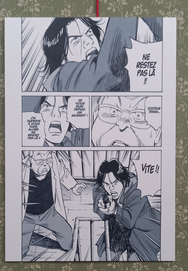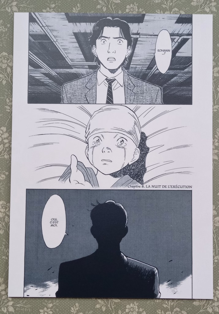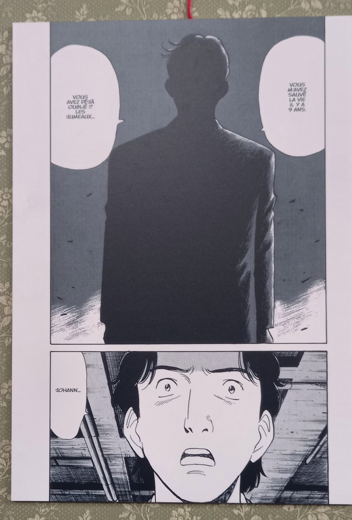 Petite anecdote sur Johann qu’on va retrouver dans pratiquement toutes les scènes : Urasawa a confié ne jamais dessiner Johann en dédicace parce que pour lui « Johann est un très bel homme, ce qui prend du temps à dessiner et en dédicaces il faut aller très vite.»