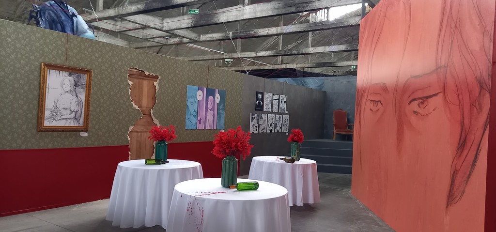 La scénographie est axée sur les 2 premiers tomes. D’un côté, on va avoir la catastrophe cette « chose » qui a ravagé le village natal d’Asa alors qu’elle était âgée de 12 ans, d’où la reproduction d’un décor apocalyptique.