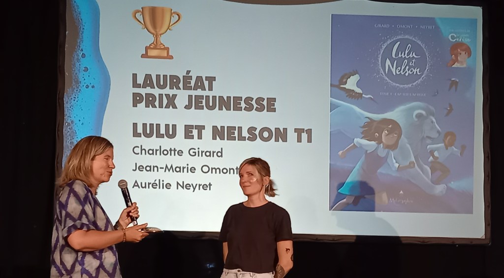 C’est un prix qui fonctionne super bien. 55 écoles ont participé à ce prix. Donc 55 écoles, c’est 1 600 élèves à peu près. L’Éducation nationale forme les profs pour qu’ils puissent présenter des animations autour de la bande dessinée. Le département, le Cabaret Vert procurent des BD à ces écoles. Chaque école reçoit deux lots des 3 BD en compétition. Ils les lisent, ils travaillent autour de ça et après il y a un vote encadré avec un QR code. Chaque élève vote. Le prix est remis au mois de juin à la médiathèque Voyelles lors des rencontres avec les artistes. Cette année, cinq artistes sont venus. Donc c’est 800 élèves qui durant deux jours ont pu être accueillis dans les différentes structures et notamment la médiathèque Voyelles et dans les différentes écoles aussi du département pour rencontrer ces auteurs. Il y a beaucoup d’interactions, c’est très agréable à vivre pour les auteurs comme pour les élèves.