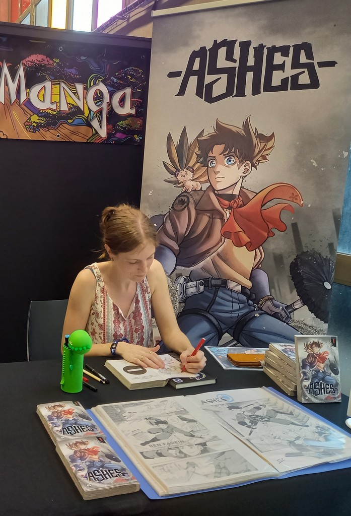 Exactement. Et d’ailleurs pour information, elle va animer des ateliers manga dans la zone famille de l’Estaminet samedi et dimanche. Pour ceux qui voudraient la rencontrer et ne peuvent pas aller au Cabaret Vert, elle fait une petite conférence manga / développement durable suivie d’une séance de dédicace chez Plume et Bulle le samedi en début d’après-midi. Vraiment ça vaut le coup de s’intéresser un peu à cette artiste et à son manga Ashes. En manga, on a aussi un auteur Naokuren qui vient avec Cyfandir Chronicles, une série parallèle à Radiant, un manga très connu. Donc voilà, pour les plus jeunes, ceux qui sont passionnés de manga, il y aura de quoi faire aussi au Cabaret Vert.