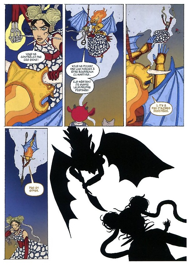 C’est elle qui a fait l’enfer, en effet et je trouve que ça lui va vraiment bien. Son dessin marche très bien même si on sent qu’il n’est pas encore aussi abouti que sur ses autres travaux et puis c’est une commande, c’est pas pareil que ses projets personnels. Néanmoins, c’est quand même très intéressant de voir ça et je trouve que ça lui va très très bien. J’aime beaucoup ce qu’elle a fait, j’aime beaucoup comment elle a dessiné Poppy aussi, ça marche très très bien.