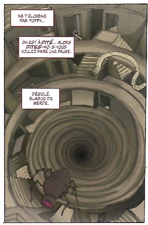 On sent qu’il y a un vrai décalage entre son travail à elle et celui d’Amilcar Pinna et c’est très impressionnant de déjà voir qu’à son jeune âge à l’époque elle arrivait à s’émanciper des codes du comics pour faire quelque chose d’aussi bien je trouve. Donc c’est vrai que c’est super. Et puis à traduire, ça a été super. À chaque fois que j’étais dans l’enfer, c’était un plaisir parce que ça donnait l’occasion de bien regarder les planches, de voir un petit peu tout ce qu’elle y avait caché. Très intéressant !