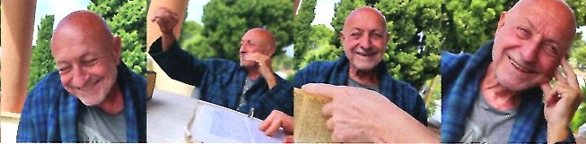 C’est magnifique. Là, sur cette série de photos, j’étais en train de lui lire un courrier qu’il avait envoyé à Jacques Glénat au tout début des années 70 où il lui rentre dedans. Il critique un numéro sur Cuvelier, il n’y va pas de main morte. Donc il avait ressorti ça des ses archives et il m’écoutait. Je lisais ça et on riait tous les deux de ce qu’il avait pu lui écrire.