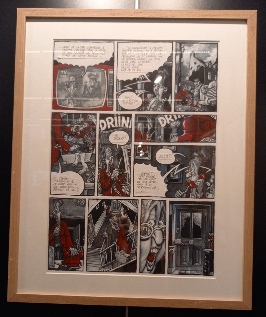 Nous allons pouvoir suivre chronologiquement le parcours de l’ancien étudiant en arts graphiques à l’Institut Saint-Luc de Bruxelles qui fit ses débuts dans l’illustration et le dessin de presse à travers huit espaces créés autour des planches originales de chaque album.