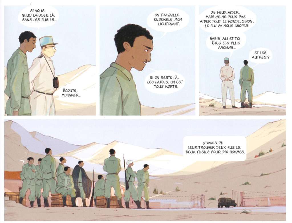 À travers le personnage de Mohamed, ils nous rappellent le sort de ces algériens de souche, souvent employés comme guides ou traducteurs, qui ont travaillé pour l’Armée française et parfois combattu à ses côtés. Après les accords d’Evian, ils furent abandonnés à leur sort ou au mieux expulsés vers la France où ils furent parqués -et oubliés- dans des camps et quarante ans plus tard (au moment où se déroule l‘action principale de l’album), ils n’avaient toujours pas le pardon du président Bouteflika et par conséquent pas le droit de remettre les pieds sur le sol de leur terre natale.